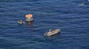 At the direction of the NASA recovery director, team members from the agency and the U.S. military now are approaching the spacecraft in inflatable boats.