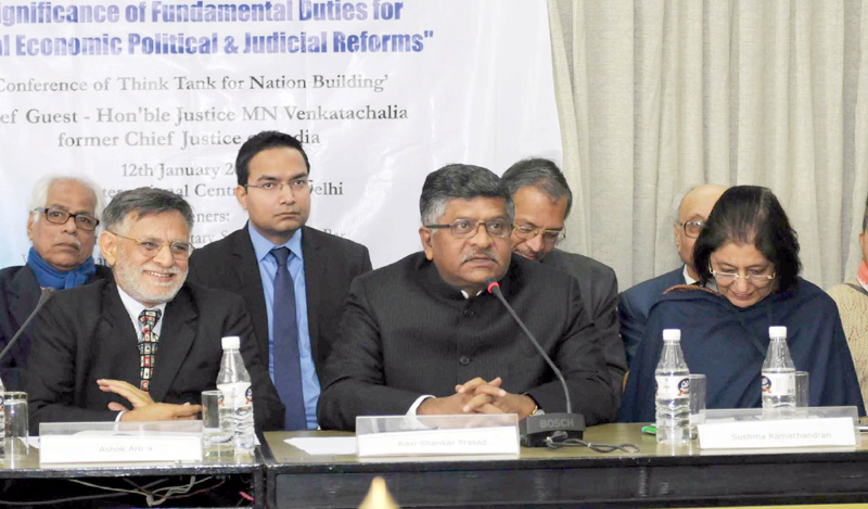 The minister said that Aadhar enabled bank payments through smart phone would prove to be a “game changer” and a tool of empowerment. He said that out of 125 crore people only 3.7 crore pay taxes and 99 lakh file Income Tax returns but have no taxable income, two crore people show annual income of Rs. 6 lakh and only 24 lakh have an annual income of Rs. 10 lakh and above. The Law and IT Minister said that a panel, led by Justice Sri Krishna, had been set up to give a report within three months on making India a hub of arbitration.