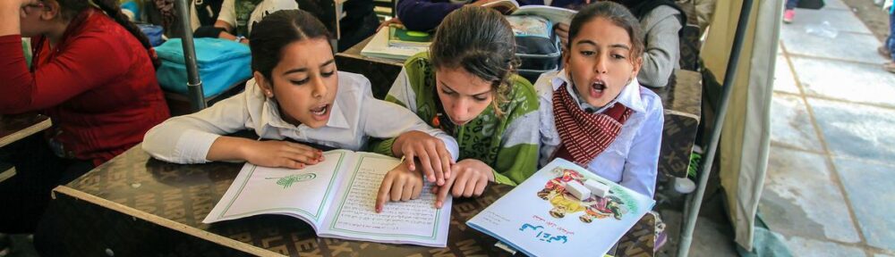 Displaced children in a classroom in Baghdad, Iraq.