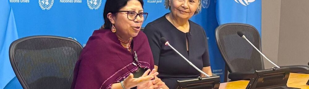Mirian Masaquiza Jerez, a UN Social Affairs Officer, and Brenda Reynolds, a recipient of the 2025 United Nations Nelson Rolihlahla Mandela Prize, brief Indigenous youth visiting UN Headquarters in New York.