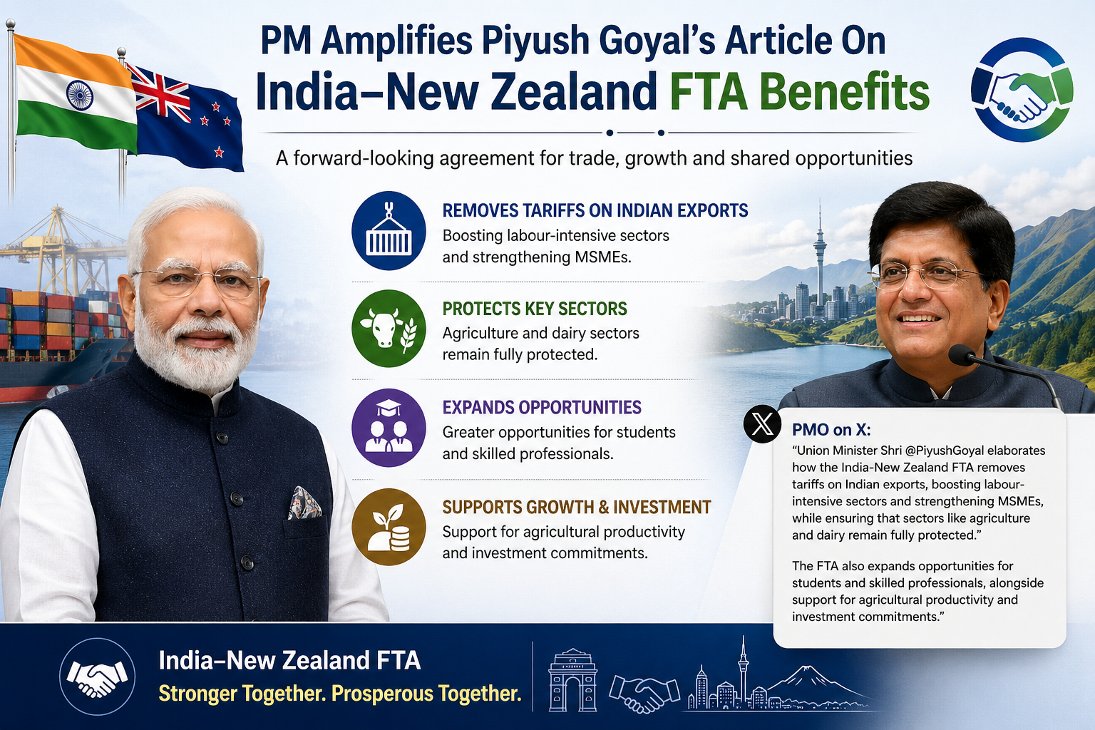 PM Shares Article Showcasing Benefits Of India–New Zealand FTA