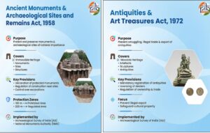 India’s approach to monument conservation has evolved into a structured and continuous process, combining institutional mechanisms, legal safeguards, and participatory models. The key legislations on Protection and Conservation of Ancient monuments are: