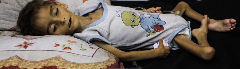 “Then the blockade on aid, hunger returned, and this time both of Nesma’s children deteriorated.” Her two-year-old daughter Jouri died from malnutrition last month and Jana “is barely hanging on”.