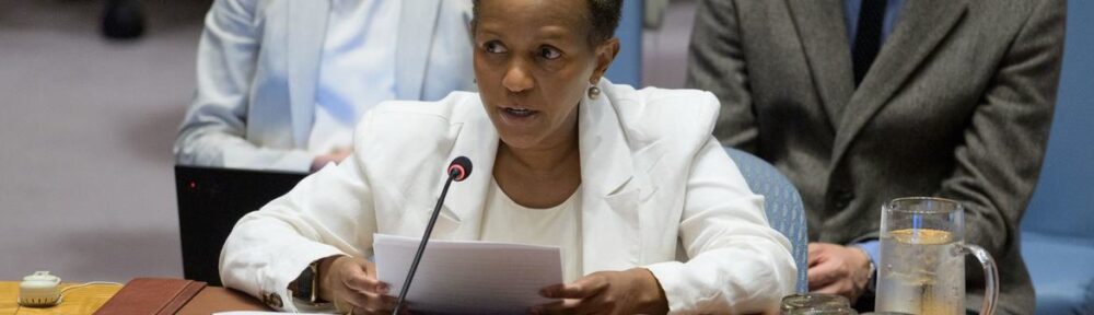 Joyce Msuya, UN Deputy Emergency Relief Coordinator, briefs the Security Council meeting on maintenance of peace and security of Ukraine.