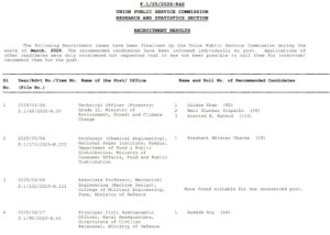 The Union Public Service Commission has finalised a set of recruitment results during March 2026. Candidates who have been recommended for appointment have been individually notified by post. Applications of other candidates were duly considered but regretted that it has not been possible to call them for interview/recommend them for the post.